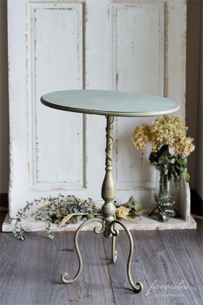 ![]() テーブル部分は、色むらをだしてブロカントな雰囲気に作られています。フレンチシックなグリーンのカラーです。 |