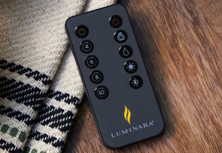 | ルミナラ製品専用10 ボタン リモコン。 ルミナラ本体には1種のタイマーモードのみとなりますが、この別売りのリモコンがあると電源のon/offに加え4段階のタイマーモード設定(4、6、8、または 10 時間の点灯時間)が選べます。また、ゆらぎの速さやあかりの照度も調節可能です。 10 ボタン リモコンは、すべてのルミナラ リモコン対応キャンドルと互換性があります。1 つのルミナラ リモコンを複数のルミナラ キャンドルに使用できます。 ※ルミナラ本体底面の電池カバーにリモコンマークがついているルミナラのみ対象。 マークがついていないルミナラでは、電源のon/offのみ使用できます。 通常は、5~6mの距離で使えますので離れた場所や高い場所に置いてもリモコン操作が可能です。 |