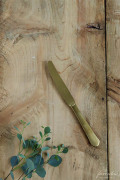 NOVAのカトラリ プラド デザートナイフ ゴールド。ゆるやかな曲線がエレガントなデザイン。 一般的な家庭用カトラリーは、「18-8」が主流ですが、プラドは錆に強い「18-10ステンレス」(18%のクロム+10%のニッケル)を採用しています。 マットなヴィンテージ加工を施したゴールドでテーブルの優雅なアクセントに。 ※4本までネコポス可(他のブランドのカトラリーと同梱可) |