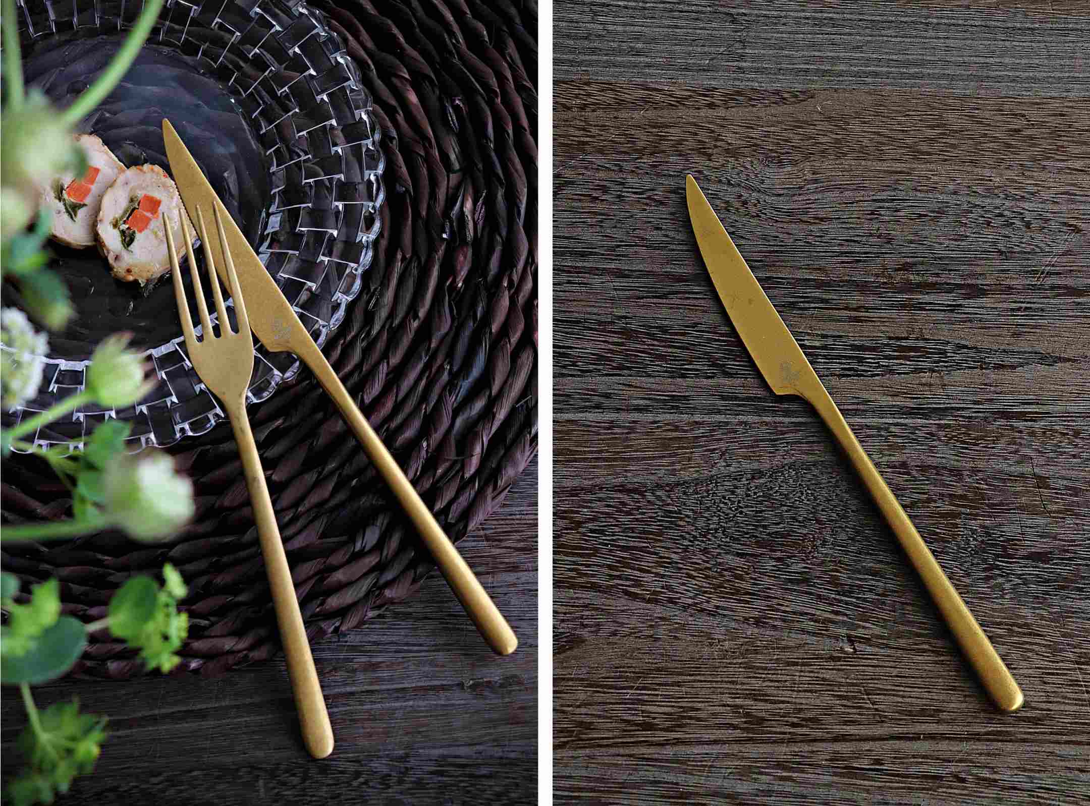 手に取った瞬間に伝わる、静かで上質な存在感。 マットなゴールドの質感が、料理と器の美しさを引き立てます。 シンプルなのに、食卓の空気が変わる——それがBilbaoの魅力です。 Bilbaoコレクションは、スペインの老舗カトラリーメーカーCOMASが手がけるモダンライン。 無駄を削ぎ落としたフォルムと、落ち着いたヴィンテージ加工の表情が、日常の食事からおもてなしのテーブルまで自然に溶け込みます。 このテーブルナイフは、ほどよい重みと美しいバランスが特長。 手に取ると自然に馴染み、なめらかな動きで心地よく使えます。 華美にならず、それでいて確かな存在感。 Bilbaoのゴールドナイフは、食卓に静かな華やぎを添えます。 |