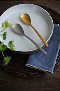 食卓をきれいに見せる、Bilbaoのテーブルスプーン。 Bilbao(ビルバオ)は、器やリネンを選ばないシンプルで美しい佇まい。 シルバーは凛と、ゴールドはやわらかく。選ぶ色で、食卓の印象が美しく変わります。 COMAS「Bilbao」コレクションは、ナチュラルな雰囲気とシンプルなフォルムが特徴のカトラリー。 和食・洋食どちらのテーブルにも自然に馴染み、日常の食卓を上品に整えてくれます。 先端がやや広がるスプーン形状は、Bilbaoコレクションの特徴的なデザイン。 フォークやナイフと揃えると美しいラインが生まれ、テーブルをより印象的に見せてくれます。 細身のハンドルとのバランスも美しく、カレーやシチュー、スープ、ピラフなどに使いやすい一本です。 普段使いはもちろん、来客時のテーブルにも美しく映えるスプーンです。 |