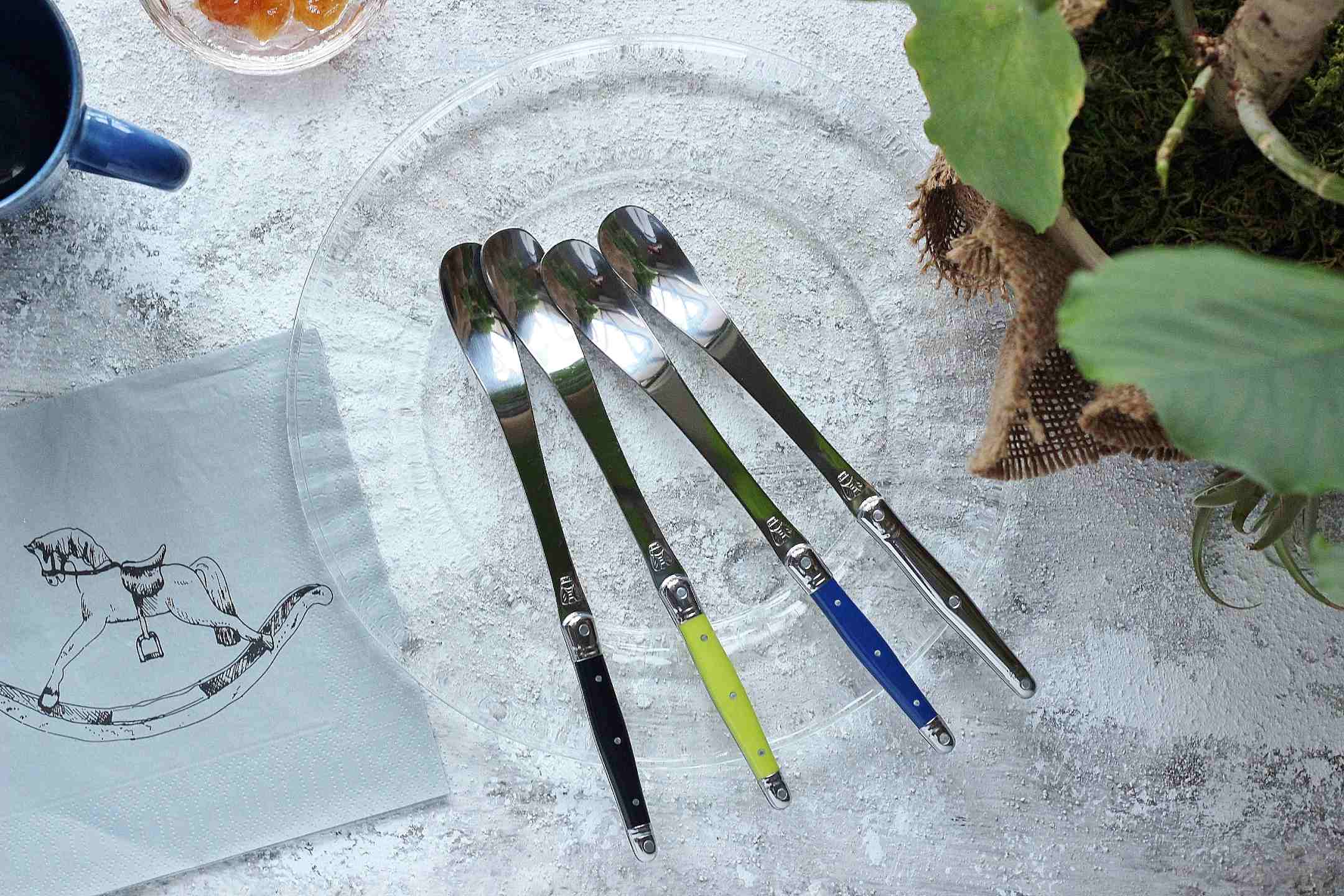 | 蜂のエンブレムで知られる「Laguiole(ライヨール)」のジャムスプーン。 柔らかいジャムやハチミツ、ヨーグルトのソースも“塗る・すくう”が快適です。 瓶の底まで届くやや長めの設計で、口径の小さいボトルでも手が汚れにくいのが魅力。 ハンドルは手になじむゆるやかなカーブで、朝食からデザート、 フランスで親しまれる食前酒タイム「アペロ(Apéro)」まで、幅広いシーンで活躍します。 柄はやや長めで瓶の底までしっかり届き、ジャムやハチミツも最後まできれいにすくえます。 さらに、コーヒーやカクテルを混ぜるマドラー代わりとしても活躍します。 |