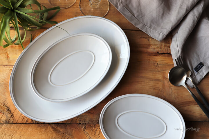 | ポルトガルの陶器COSTA NOVA 「フリッソシリーズ」のオーバルプラターが新発売です。 サイズは、L、M、Sをご用意しています。 |