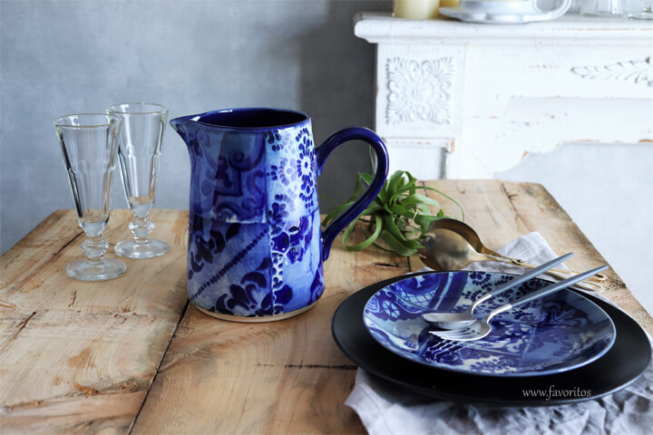 | ポルトガルの街並みを彩る装飾タイル、アズレージョ。 コスタ・ノバの工場からも近いポルトの街でも、駅などの建造物を飾る壁一面のアズレージョが見られます。 LISBOA(リスボン)はそんなアズレージョをモチーフにしたコレクション。 どことなく異国情緒ただようアラベスクのパッチワーク模様は、素材を活かしたシンプルなお料理に。 ホームパーティにぴったりの、大振りのアイテムが揃っています。 LISBOA(リスボン)のピッチャーです。 ピッチャーにたっぷり飲み物を入れて、おもてなしにご利用いただけます。 また、ピッチャーとしてだけでなく、フラワーベースとしてもお使い頂けます。 ヨーロッパのガーデンパーティーなどでも素敵にテーブルセッティングされてよく使われています。 |