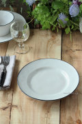 | ポルトガルの陶器COSTA NOVA BEJA(ベジャ)シリーズのサラダプレートです。 ホワイトのシンプルな形にダークネイビーのリムがアクセントになったBEJA。 |