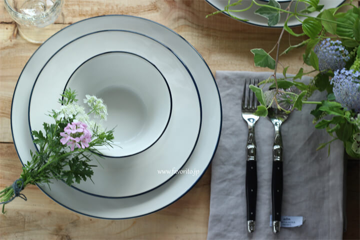 ![]() ディナープレートにサラダプレートとボウルを重ねています。 重ねるとテーブルが華やかになります。 |
