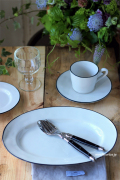 | ポルトガルの陶器COSTA NOVA BEJA(ベジャ)シリーズのオーバルプラターMサイズです。 ホワイトのシンプルな形にダークネイビーのリムがアクセントになったBEJA。 クリーンなデザインに、ハンドメイドのような表面の凹凸が温かみを加えています。 ギフトにもご自宅用にも 大変人気のあるオーバル型(楕円形)のプレートです。 |
