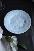 ![]() プレートに施された繊細なレリーフのデザインを、アップにしました。 |