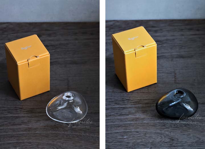 | 置く場所を選ばず、小さなお花を一輪飾ってお楽しみください。 カラーは、クリアーとインディゴブルーの2色をご用意しております。 |