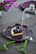 ![]() 艶やかなパープルの花びらが、デザートの色味をいっそう引き立てます。 器そのものが、テーブルの主役になる一枚です。 |