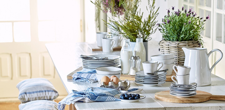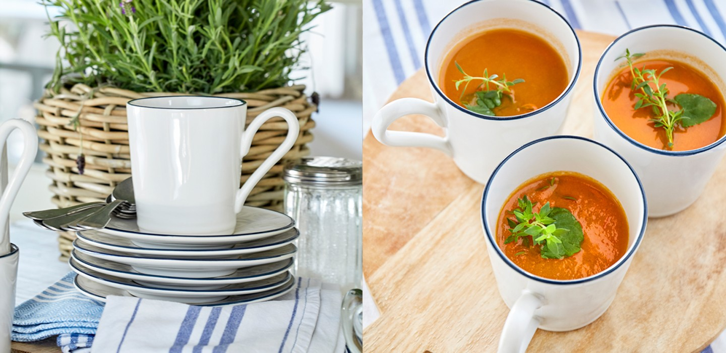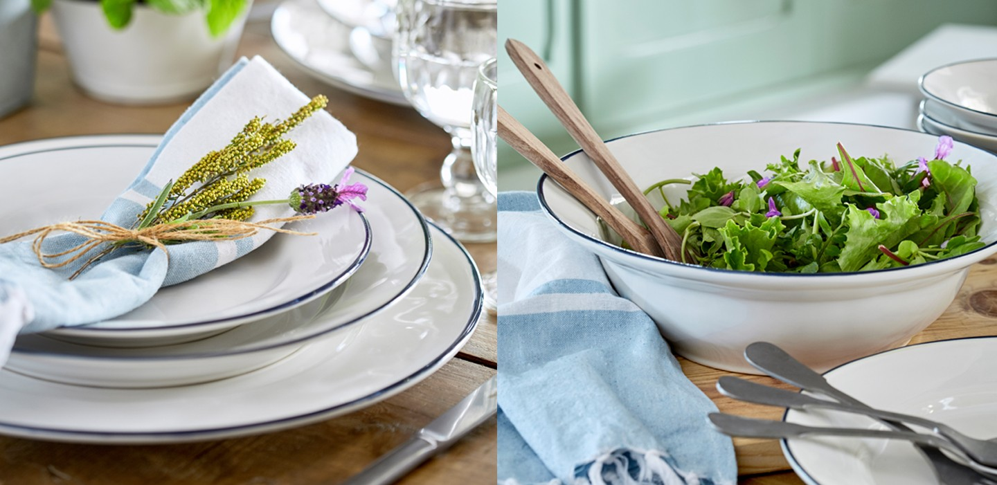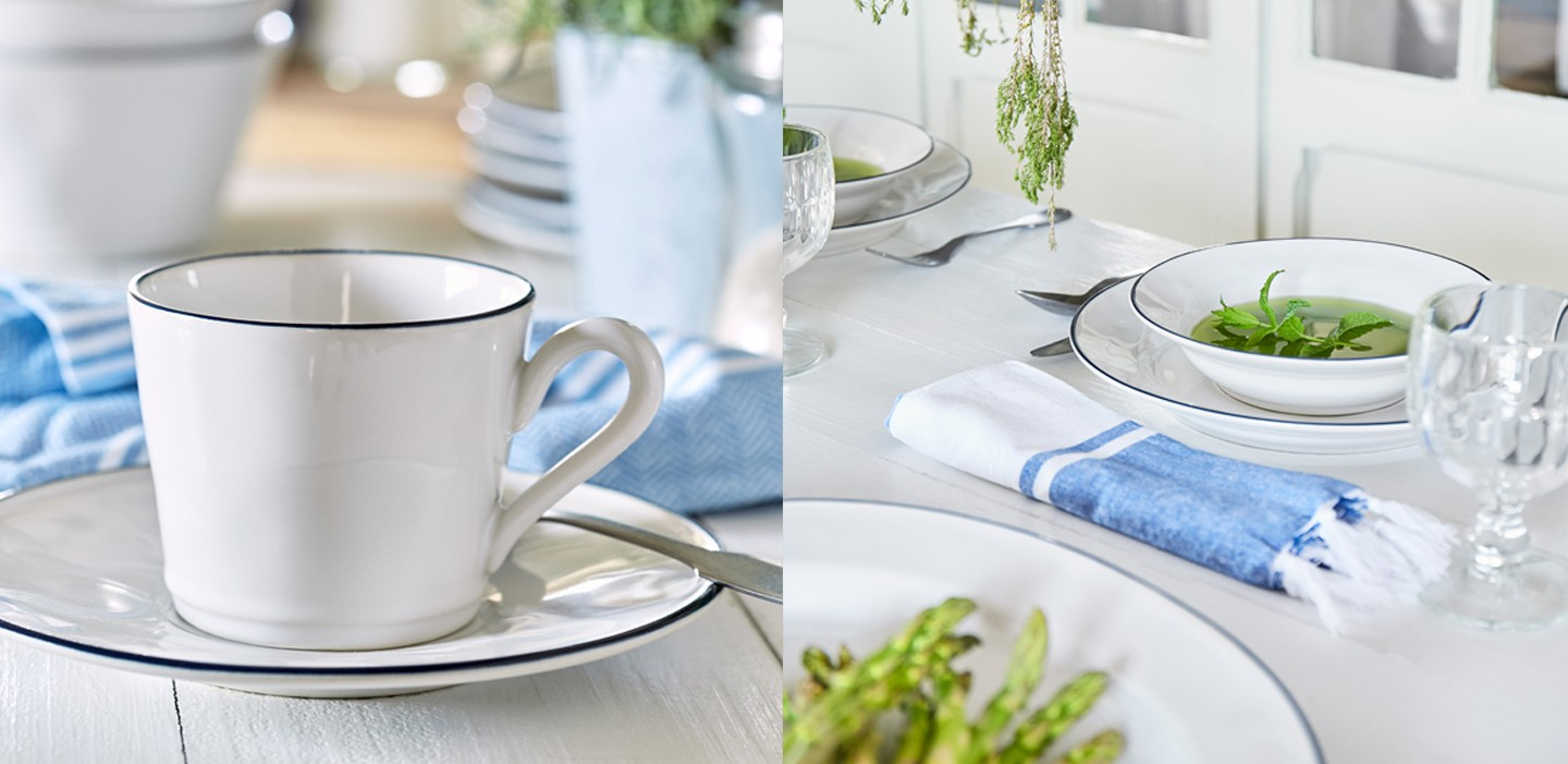 | ポルトガルの陶器COSTA NOVAのBEJA(べジャ)シリーズです。 ホワイトのシンプルな形にダークネイビーのリムがアクセントになったBEJA。 クリーンなデザインに、ハンドメイドのような表面の凹凸が温かみを加えています。 卵と野菜、ベーコンの朝食メニューにも、おつまみを盛り合わせてバル風にも。 ネイビーのエッジがお料理をフォトジェニックに引き締めてくれます。 |